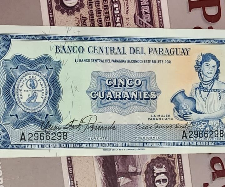 5 Guaranies azul Firma Rivarola Grande